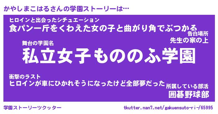 | 男性向けラノベタイトル風あだ名 | 『カヤシマコハルアートオンライン』 |