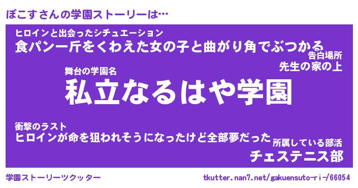 | 男性向けラノベタイトル風あだ名 | 『ぽこすの憂鬱』 |