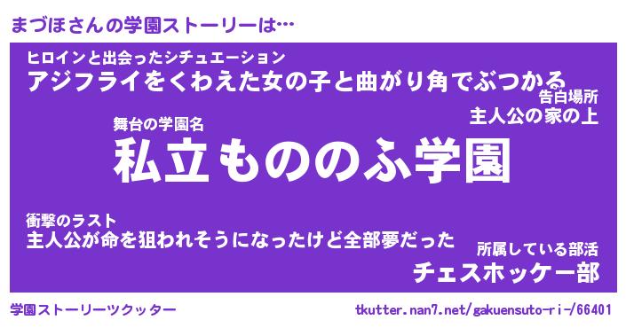 | 男性向けラノベタイトル風あだ名 | 『まづほの憂鬱』 |