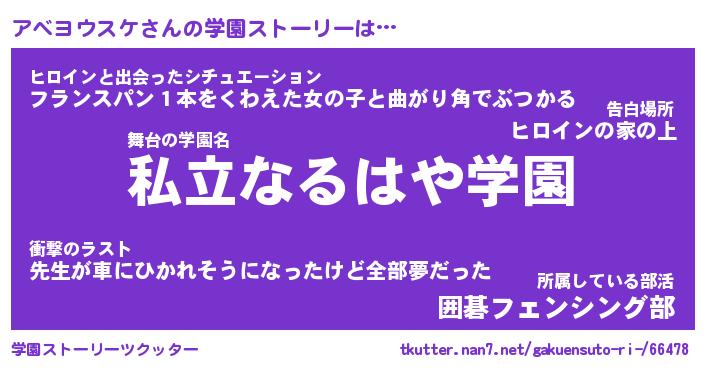 | 男性向けラノベタイトル風あだ名 | 『アベヨウスケの憂鬱』 |