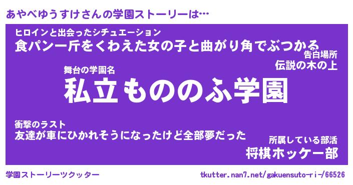 | 男性向けラノベタイトル風あだ名 | 『あやべゆうすけの憂鬱』 |