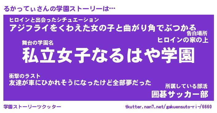 | ヘコむあだ名 | 『るかにゅー』『豆乳』『るかお』 |