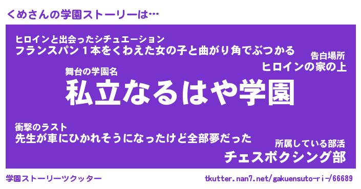 | 女子向けラノベタイトル風あだ名 | 『くめ姫と円卓の騎士』『くめの婚約者』 |