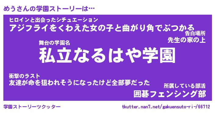 | 告白場所 先生の家の上 …「ふぃぎゅこ」 | 2月17日 06:24 |