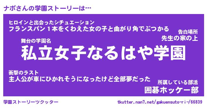 | 女子向けラノベタイトル風あだ名 | 『誰かこのナポを説明してください! ~契約から始まるウェディング~』 |
