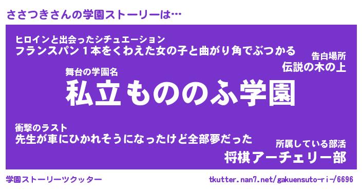 | 男性向けラノベタイトル風あだ名 | 『ささつきの憂鬱』 |
