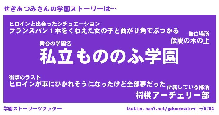 | 男性向けラノベタイトル風あだ名 | 『せきあつみの憂鬱』 |
