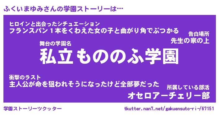 | 女子向けラノベタイトル風あだ名 | 『(仮)ふくいまゆみのやんごとなき事情』 |