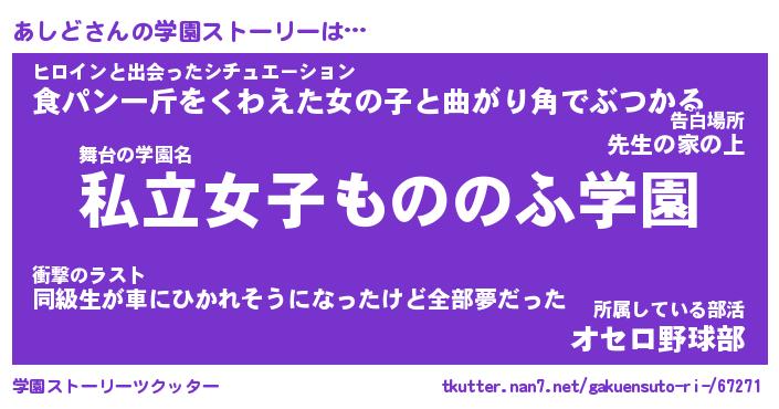 | 告白場所 先生の家の上 …「ふぃぎゅこ」 | 2月17日 06:24 |