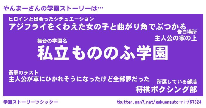 | 男性向けラノベタイトル風あだ名 | 『やんまーの憂鬱』 |