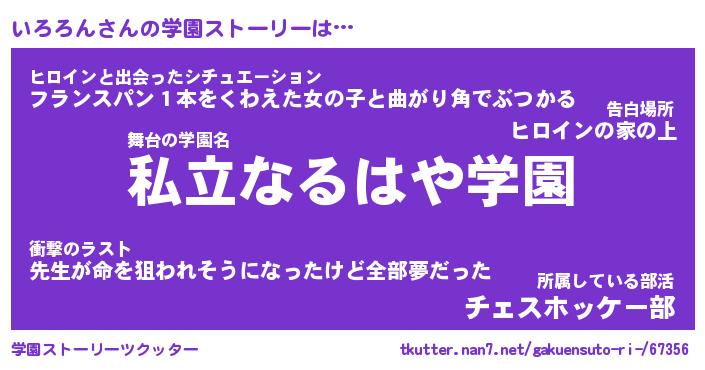 | 告白場所 先生の家の上 …「ふぃぎゅこ」 | 2月17日 06:24 |