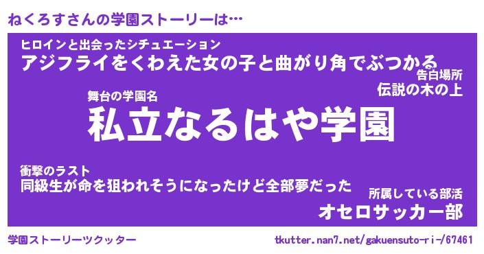| 伝説のあだ名 | 『伝説のスナイパーねくろす』 |