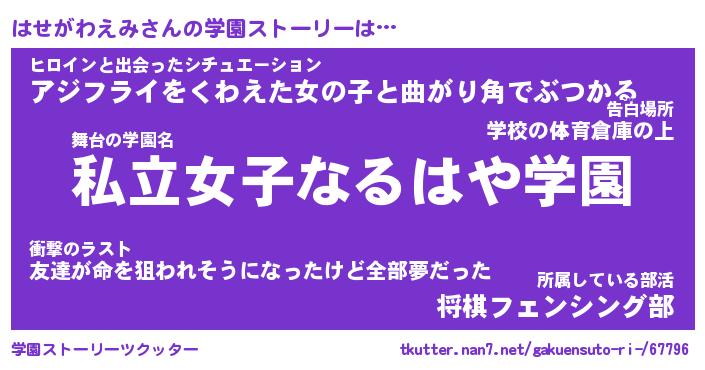 | 女子向けラノベタイトル風あだ名 | 『誰かこのはせがわえみを説明してください! ~契約から始まるウェディング~』 |