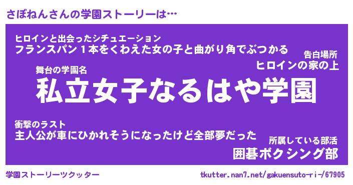 | 告白場所 先生の家の上 …「ふぃぎゅこ」 | 2月17日 06:24 |