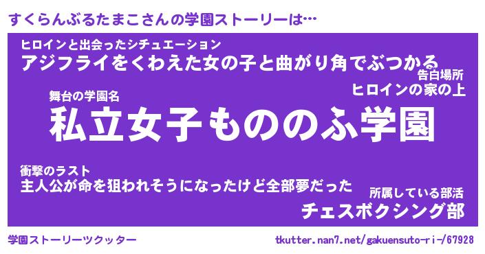 | 女子向けラノベタイトル風あだ名 | 『誰かこのすくらんぶるたまこを説明してください! ~契約から始まるウェディング~』 |