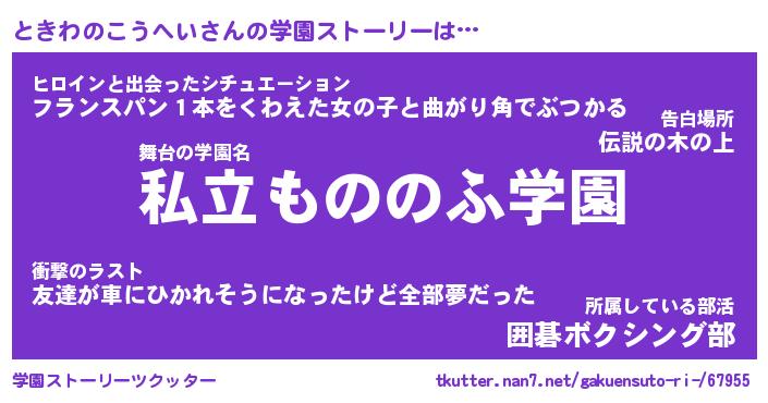 | 男性向けラノベタイトル風あだ名 | 『ときわのこうへいの憂鬱』 |