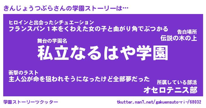 | ヒーロー風カッコイイあだ名 | 『スーパーキンジョウツブラ』 |