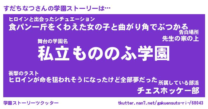 | 女子向けラノベタイトル風あだ名 | 『(仮)すだちなつのやんごとなき事情』 |