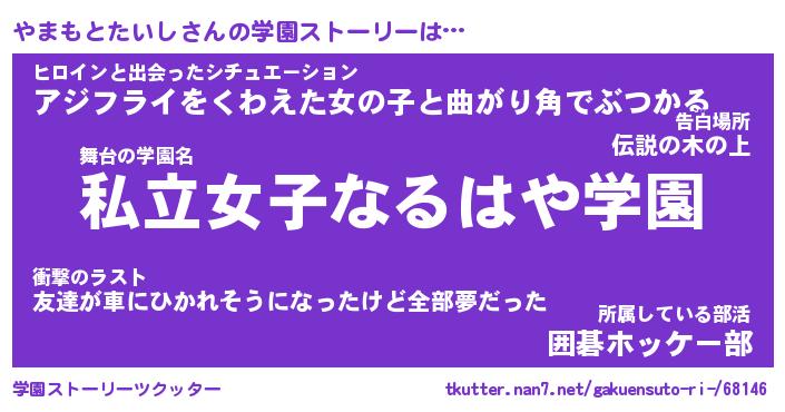 | 女子向けラノベタイトル風あだ名 | 『やまもとたいし姫と円卓の騎士』 |