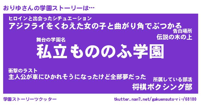 | 女子向けラノベタイトル風あだ名 | 『(仮)おりゆのやんごとなき事情』 |