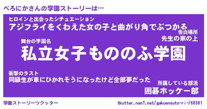 | ファンタジー風あだ名 | 『ベロフェル』『エターナルベロニカー』 |