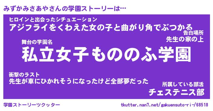 | 伝説のあだ名 | 『封印されし竜騎士みずかみさあや』 |