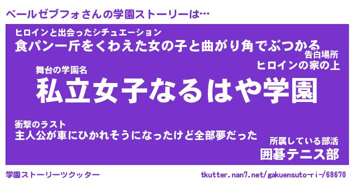 | 男性向けラノベタイトル風あだ名 | 『ベールゼブフォアートオンライン』 |