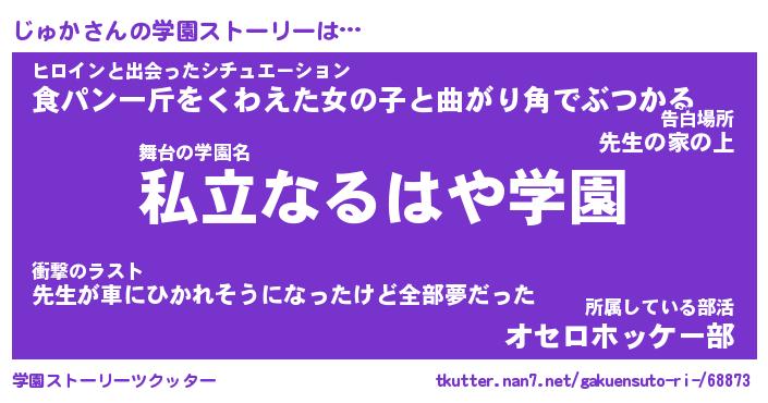 | 女子向けラノベタイトル風あだ名 | 『(仮)じゅかのやんごとなき事情』 |