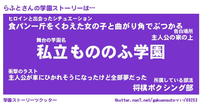 | 男性向けラノベタイトル風あだ名 | 『らふとの憂鬱』 |