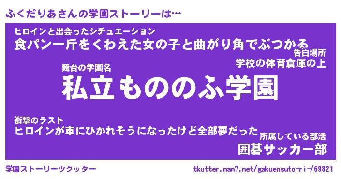 | 男性向けラノベタイトル風あだ名 | 『ふくだりあの憂鬱』 |