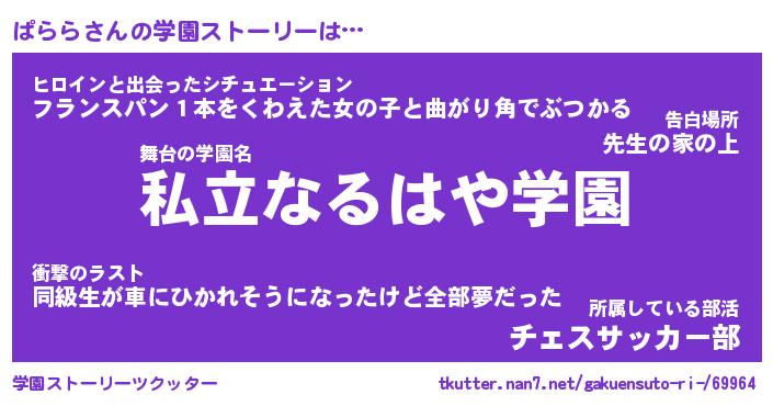 | ヘコむあだ名 | 『ぱらっふぃ~』『豆乳』『ぱらお』 |