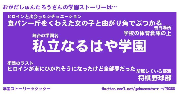 | 男性向けラノベタイトル風あだ名 | 『おかだしゅんたろうの憂鬱』 |