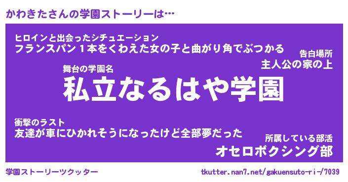 | 男性向けラノベタイトル風あだ名 | 『かわきたの憂鬱』 |