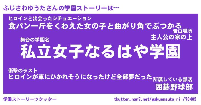 | 男性向けラノベタイトル風あだ名 | 『フジサワユウタアートオンライン』 |