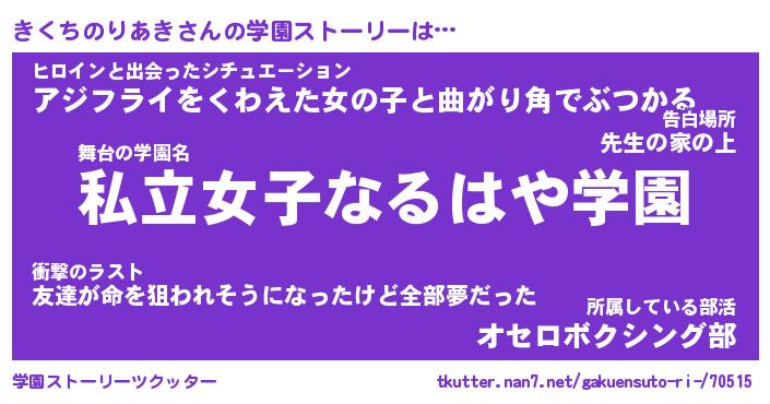 | 女子向けラノベタイトル風あだ名 | 『きくちのりあき姫と円卓の騎士』 |
