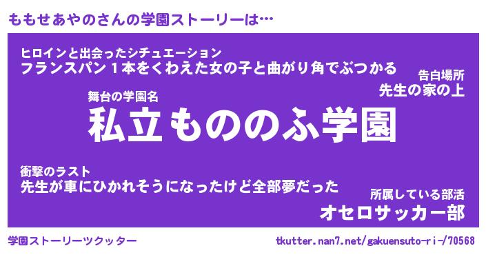 | ヒーロー風カッコイイあだ名 | 『スーパーモモセアヤノ』『銀牙騎士モモ』 |