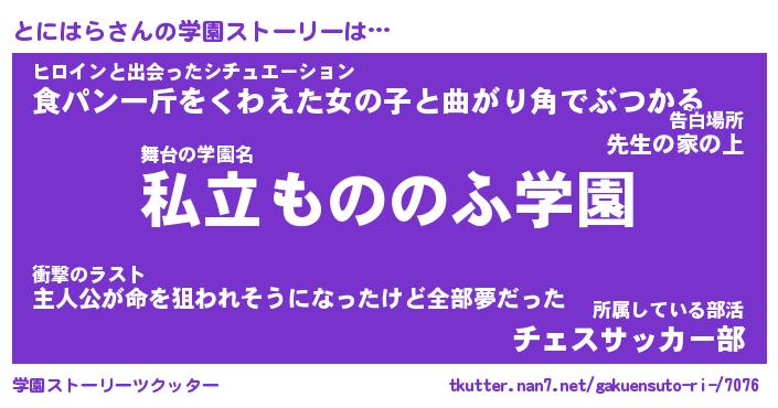 | ファンタジー風あだ名 | 『トニフェル』『エターナルトニハラー』 |