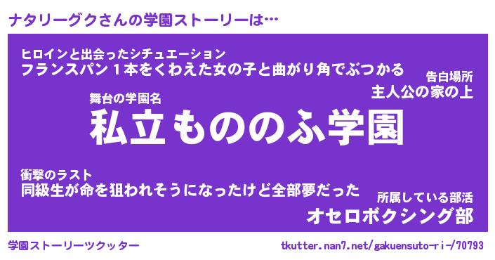 | 男性向けラノベタイトル風あだ名 | 『ナタリーグクの憂鬱』 |