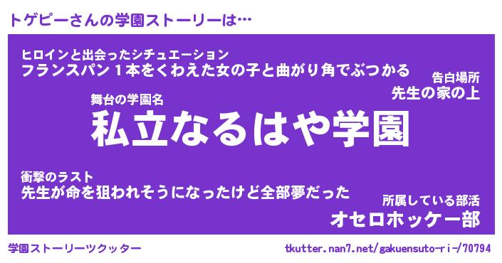 | 告白場所 先生の家の上 …「ふぃぎゅこ」 | 2月17日 06:24 |