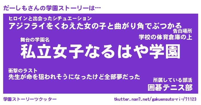| 先生 | だーしも先生が勤める学校名『都立ささくれ高校』 |