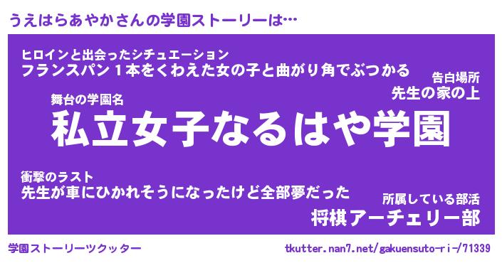 | 肩書あだ名 | 『うえはらあやか御曹司』 |