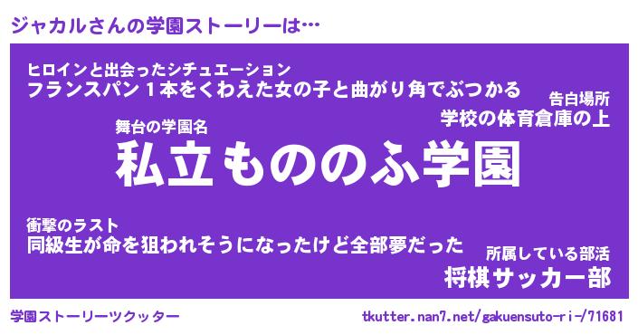 | 胡散臭い通販商品みたいなあだ名 | 『モテモテ間違いなしブレスレット…その名も「ジャカル」』 |