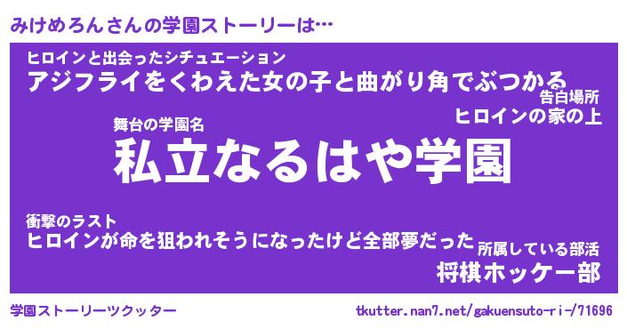 | 男性向けラノベタイトル風あだ名 | 『みけめろんの憂鬱』 |