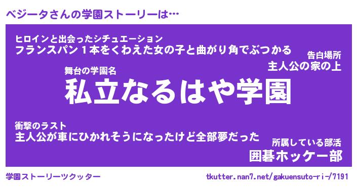 | 男性向けラノベタイトル風あだ名 | 『べジータの憂鬱』 |