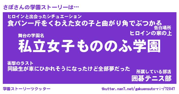 | ファンタジー風あだ名 | 『サボフェル』『エターナルサボー』 |