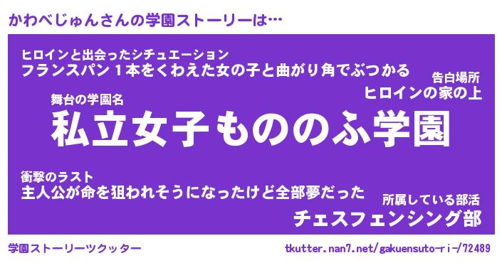 | 女子向けラノベタイトル風あだ名 | 『かわべじゅん姫と円卓の騎士』 |