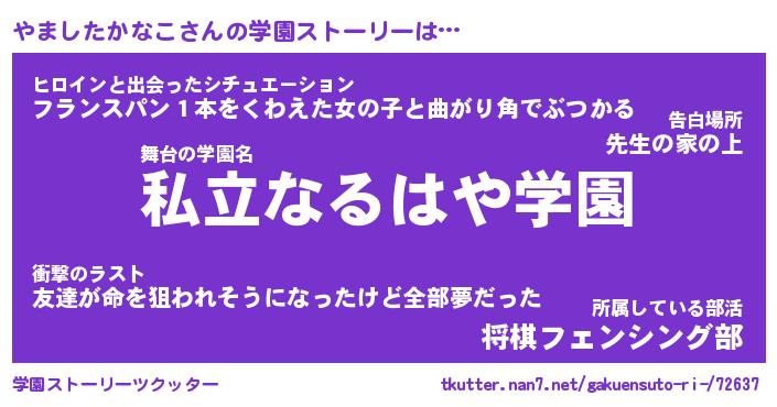| 女子向けラノベタイトル風あだ名 | 『(仮)やましたかなこのやんごとなき事情』 |