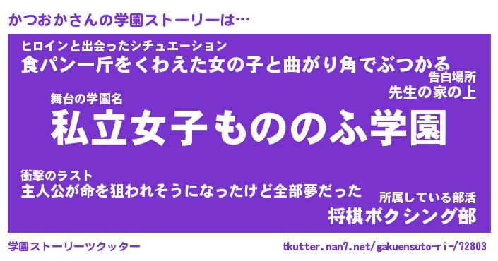 | 女子向けラノベタイトル風あだ名 | 『かつおか姫と円卓の騎士』 |