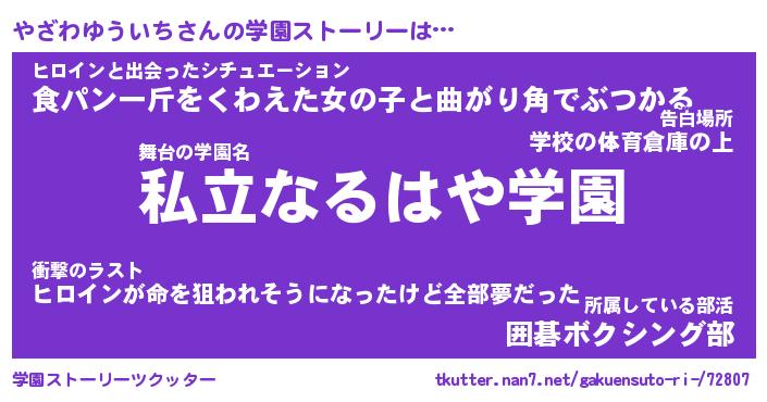 | 男性向けラノベタイトル風あだ名 | 『やざわゆういちの憂鬱』 |