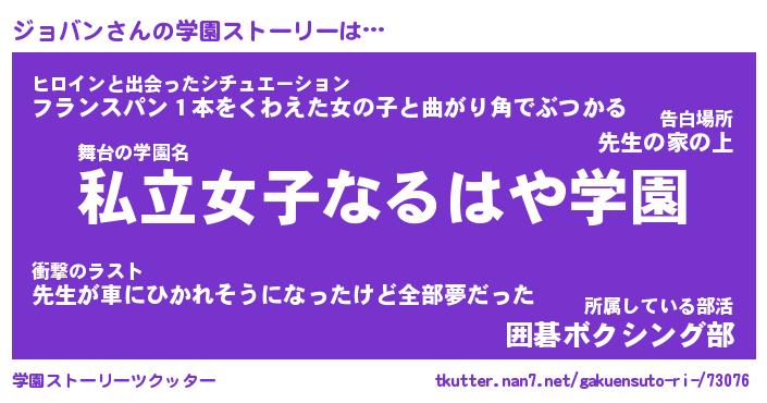 | 意味不明あだ名 | 『ペロリンジョバン』『永久保存ジョバン』 |